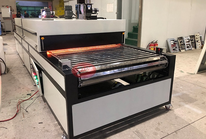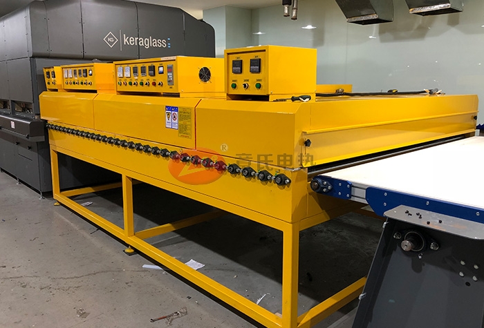 4、控製部分:每段爐蓋配單獨的小控置電箱,每段的溫度可獨立控製和顯示,溫控係統宣榮牌H721型微電腦智能型數顯溫控器,配有PV和SV數字顯示窗口,采用模塊連續緩衝式輸出控製加熱器, 采用SSR固態繼電器輸出。顛覆傳統過零觸發時帶來的電流瞬間衝擊大、控溫波動大等影響,配合性價比極高的E係列4-20MA輸出型溫控器,可使輸出電壓平穩線性變化,控溫效果更穩定,性能更卓越,(可根據溫度的誤差大小自動調整輸出功率的大小)使溫度更加精準, 溫度室溫至200℃任意可調,雙溫控器控製(設有超溫上限溫控器,防止因主溫控器失控而損壞其產品,功能有PID自整定微積分控製、自動恒溫、超溫斷電報警、漏電保護、電機過載保護等功能,內部溫差±3度;分四段八路控製(當到達設定溫度時可任意關掉其中幾段發熱管,降低加熱功率,其達到省電效果)。其它控製電路電器均采用進口三菱和日本富士電器控製;前後設有緊急停機按鈕.確保安全.箱體前後兩段裝有多色指示燈,可隨時監控爐內的工作情況和故障.鏈條設有防卡死和報警裝置。
